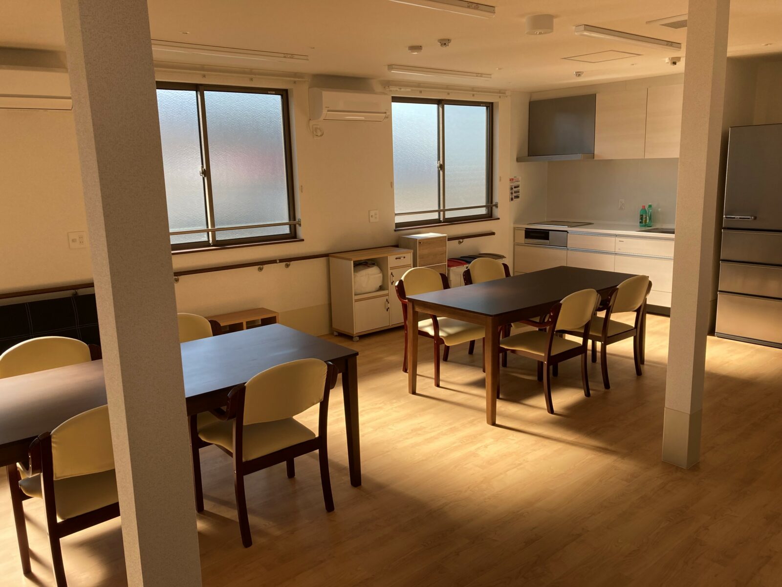 夜間もスタッフを各棟ごとに1~2名配置し、中重度の方々のご支援も実施しております。